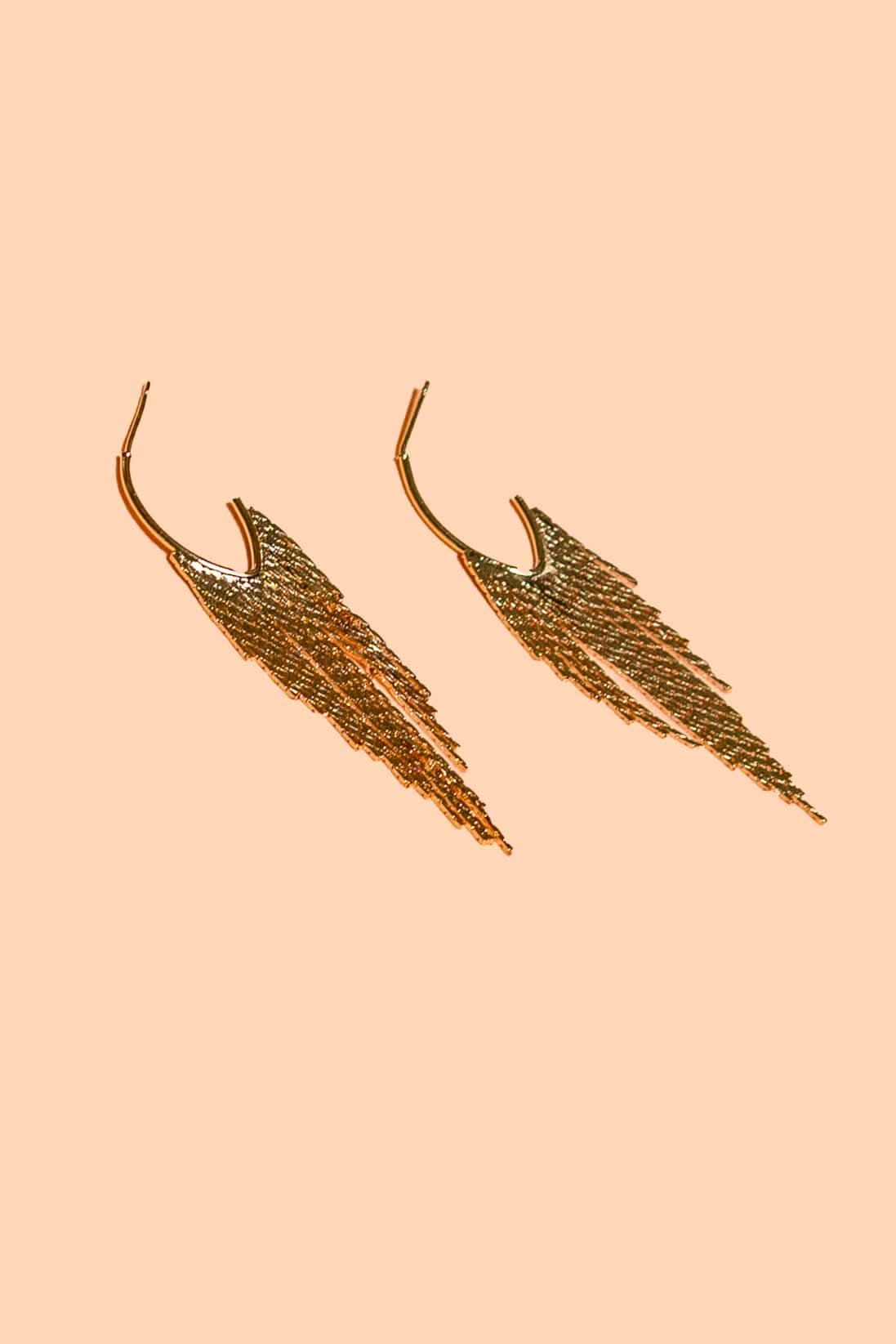 Elegant and bold, the Debbie H earrings dangle at about 3 inches and feature 18K gold plating. Made in the USA with ethically sourced materials, these earrings are the perfect statement piece for any festive occasion. A stylish addition to our family-owned boutique offering handcrafted goods.