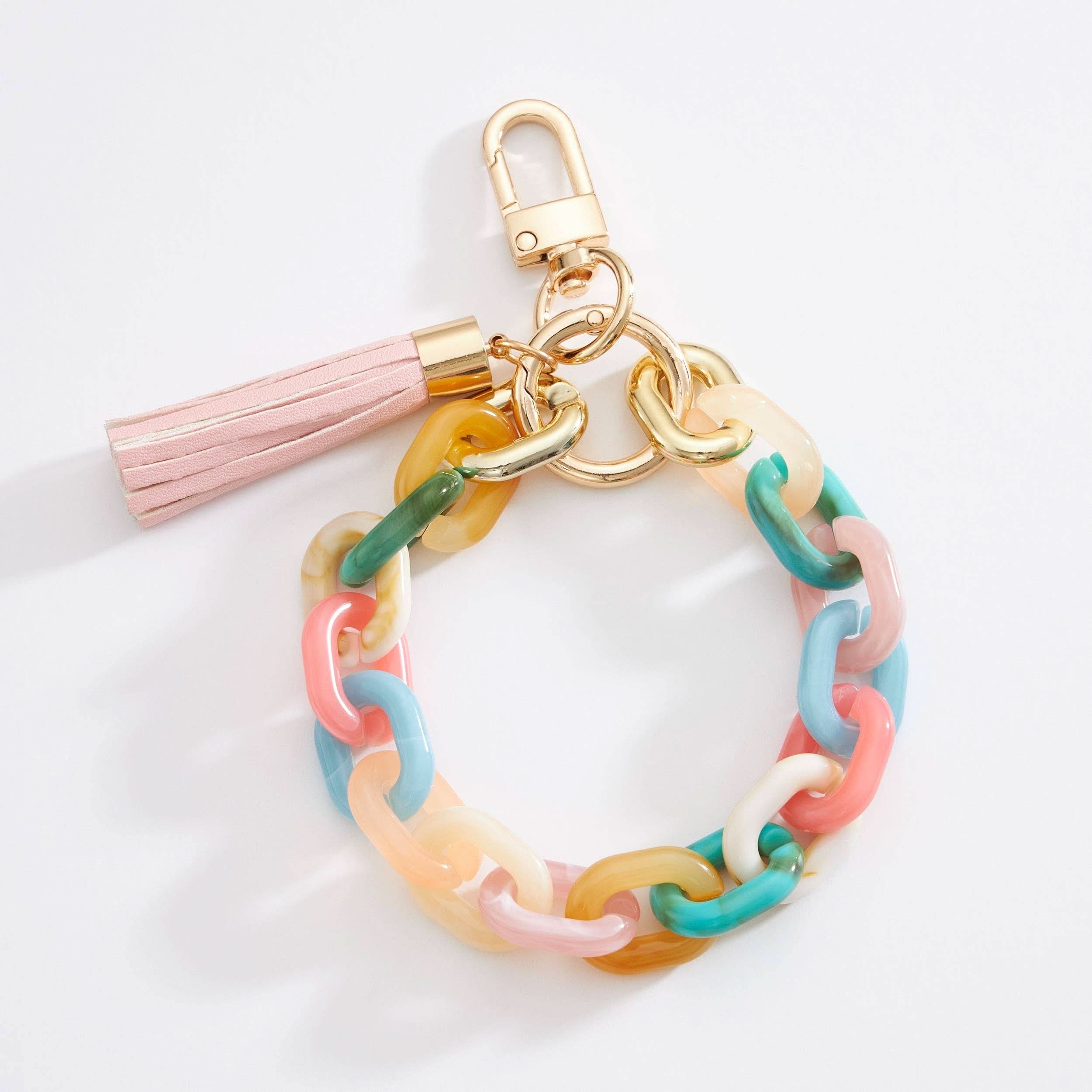 Two Tone Mixed Resin Chain Keychains with Tassel