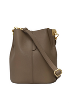 Grained cowhide leather handbag. Magnetic closure. Adjustable and removable shoulder strap. Interior divider with zippered pocket.