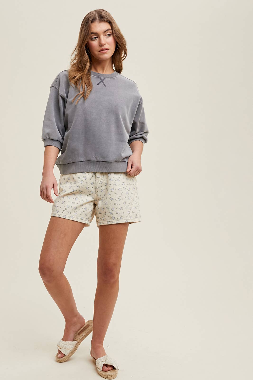 1/2 Sleeve French Terry Knit Sweatshirt
