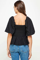 Balloon Sleeve Jacquard Top