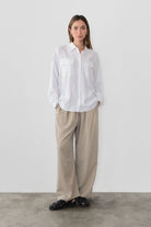 The Orion Top is an oversized classic button-down shirt crafted from washed tencel giving it a soft and luxurious feel. The front flap pockets and mother-of-pearl buttons make it a chic, everyday wardrobe piece. Size down for a more true-to-size fit.