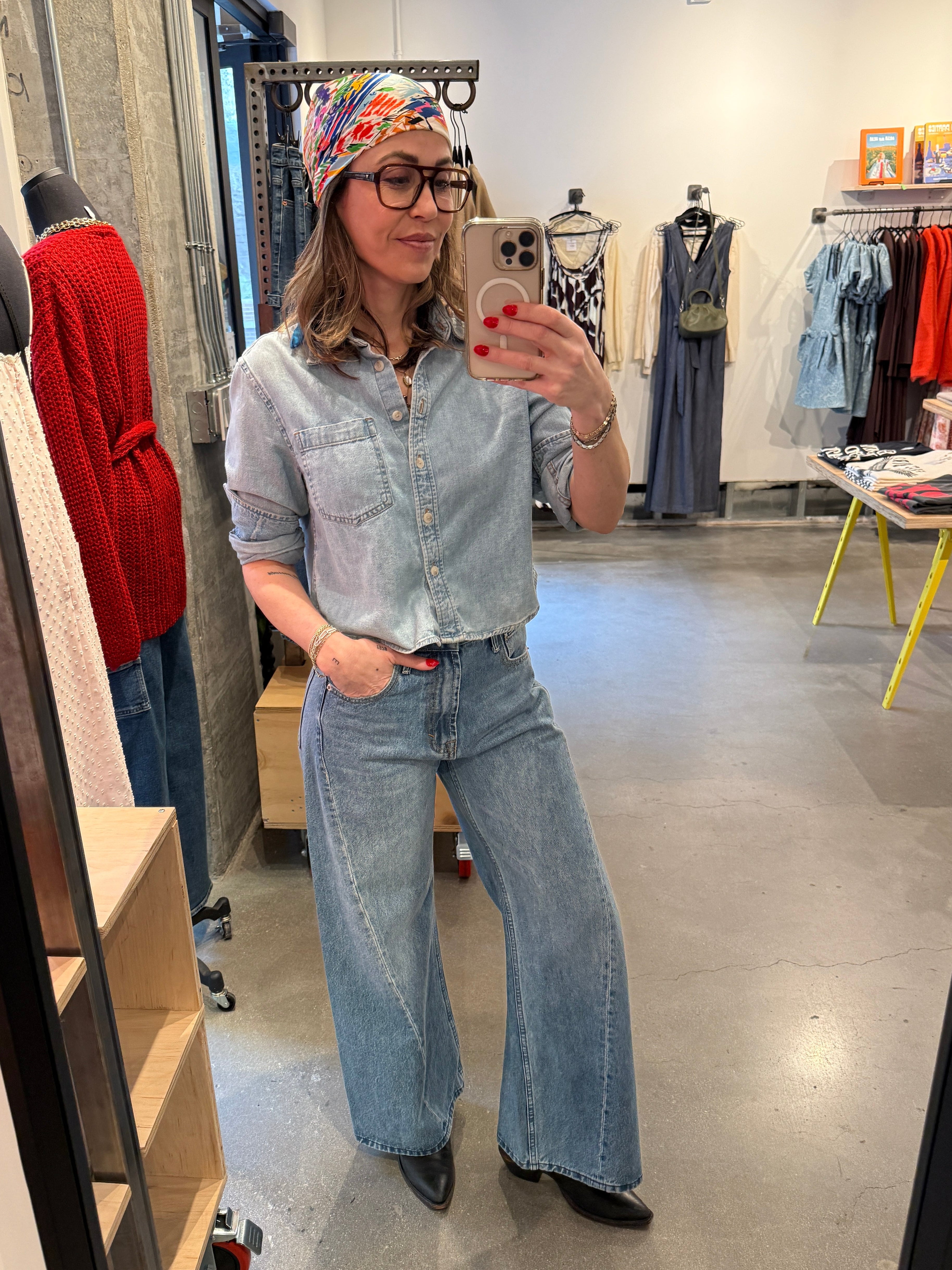 Cotton Denim Button-Up Shirt