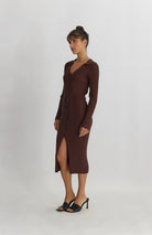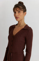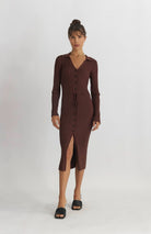 The Dana Dress has an understated fit-to-bodice silhouette, that embodies the elevated wardrobe staple. Featuring a v-neckline, collar, button-front detail and waist belt for added shape in a midi length.