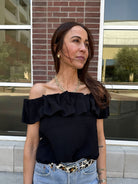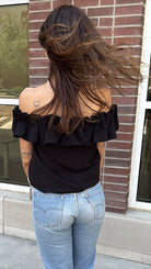 Get ready to turn heads with the Compania Fantastică Black Ruffle Top!