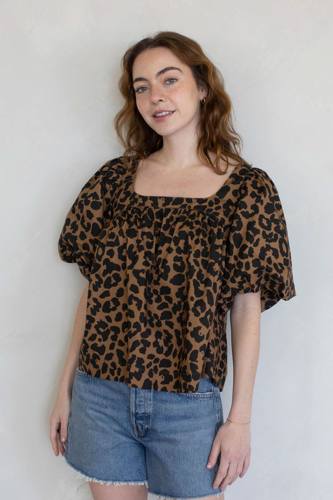 Leopard Puff Sleeve Blouse