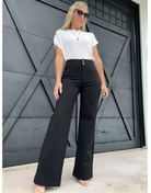 Experience comfort and style with Letter to Juliet's Black Double Button Pants. Made from soft fabric, these wide-leg pants feature double buttons for a unique touch. Elevate your wardrobe with these versatile and cute pants.