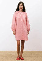 This dress features a stylish gingham print with a comfortable, loose and short shape. The long balloon sleeves add a chic touch, while the mandarin collar adds a sophisticated element.