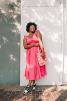 Ruffle Sleeve Detail: The playful ruffle sleeve detail adds a feminine touch to this classic maxi dress, creating a stylish and eye-catching look. Whether you're heading to brunch with friends or attending a summer wedding, the ruffle sleeves are sure to make a statement.