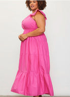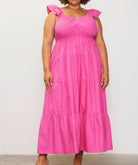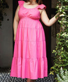 Elevate your summer wardrobe with our effortlessly chic "Poplin Ruffle Sleeve Maxi Dress." Crafted from 100% cotton, this breezy maxi dress offers the perfect blend of comfort and style. The ruffle sleeve detail adds a playful touch, while the maxi length creates an elegant silhouette that's perfect for any occasion. Available in both regular and curvy sizes, this dress is designed to flatter every body type and celebrate the beauty of every woman.