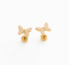 The Pip Pop Blush Butterfly stud earring is Hypoallergenic 18k gold and enamel butterfly with a flat screw back. These earrings are beautiful and comfort. They are waterproof, tarnish proof and perfect for sensitive ears.