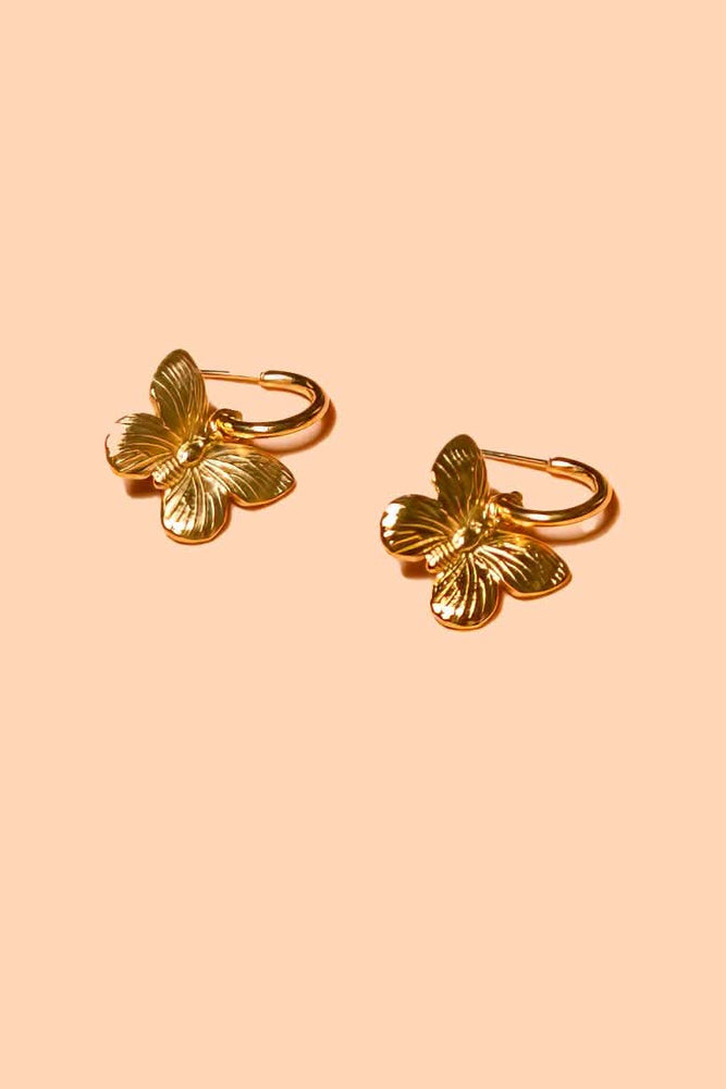 I'll Fly Away Hoops - 18K Gold Plated Butterfly