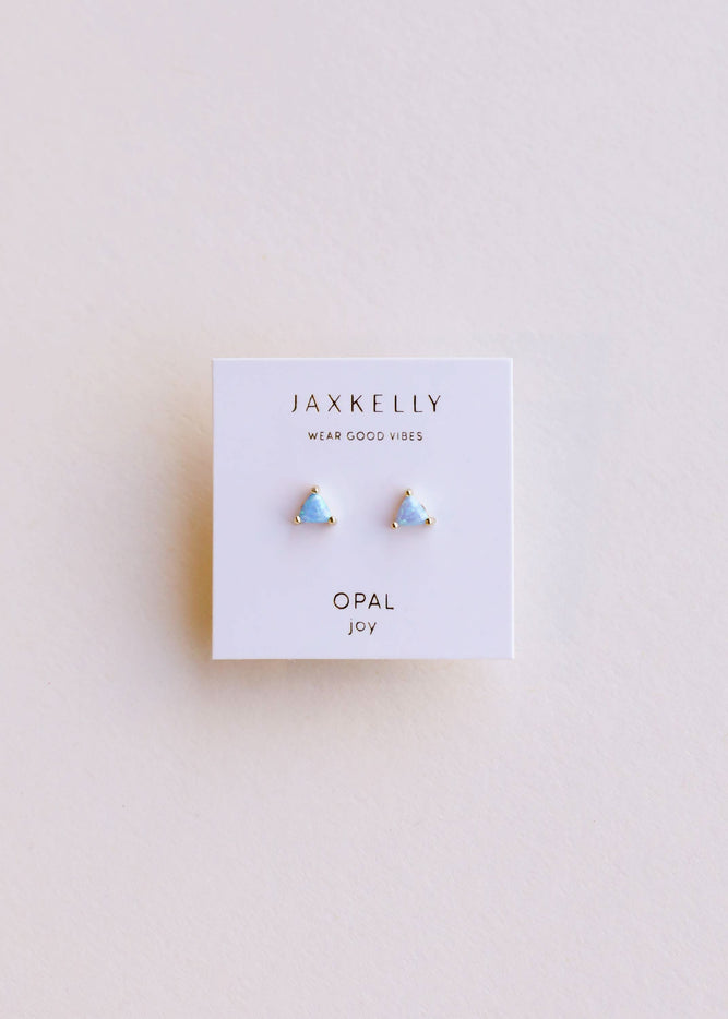 Our Mini Energy Gem studs feature a triangular stone set in a prong.