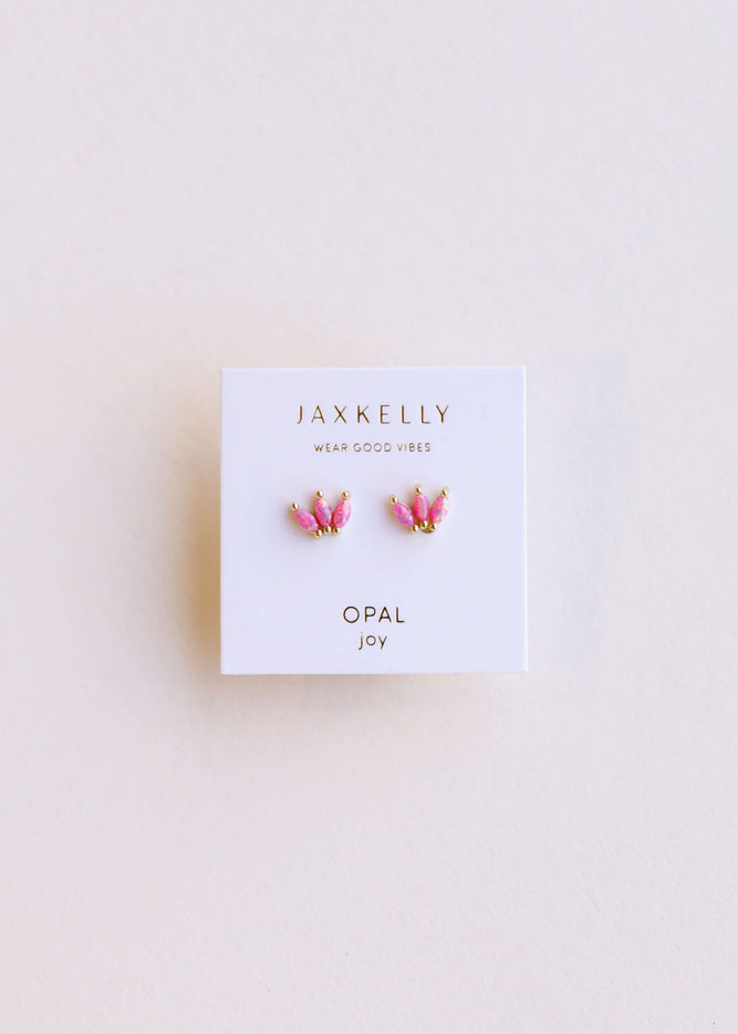 Pink Opal Stones set in a small crown set. Perfect for a pop of color on any occasion.