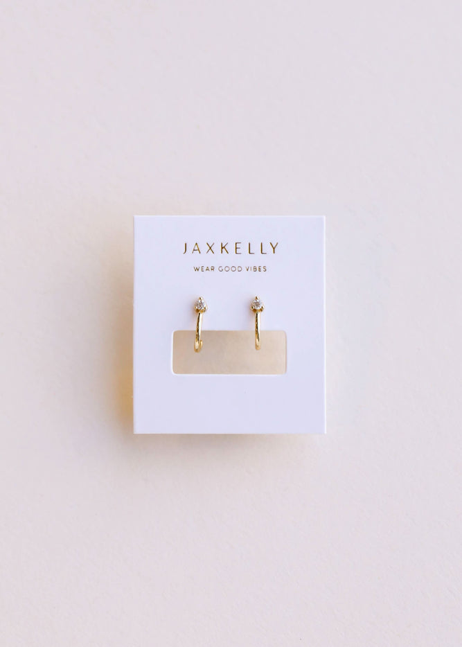 Our smallest hoop earring features a straight-back post with a mini cz that adds a pop of color. The hoop hugs the ear and can be worn anywhere.