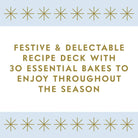 Ready to celebrate the most delicious time of year? This deck is your go-to guide for holiday brunches, seasonal parties, cookie swaps, showstopping desserts, and incredible edible gifts for family and friends. Tucked into a beautifully designed portable box, each recipe card features a full-color photo and easy-to-follow instructions for seasonal delights and creative riffs on classic bakes for Christmas, Hanukkah, New Year’s Day, and beyond, including: