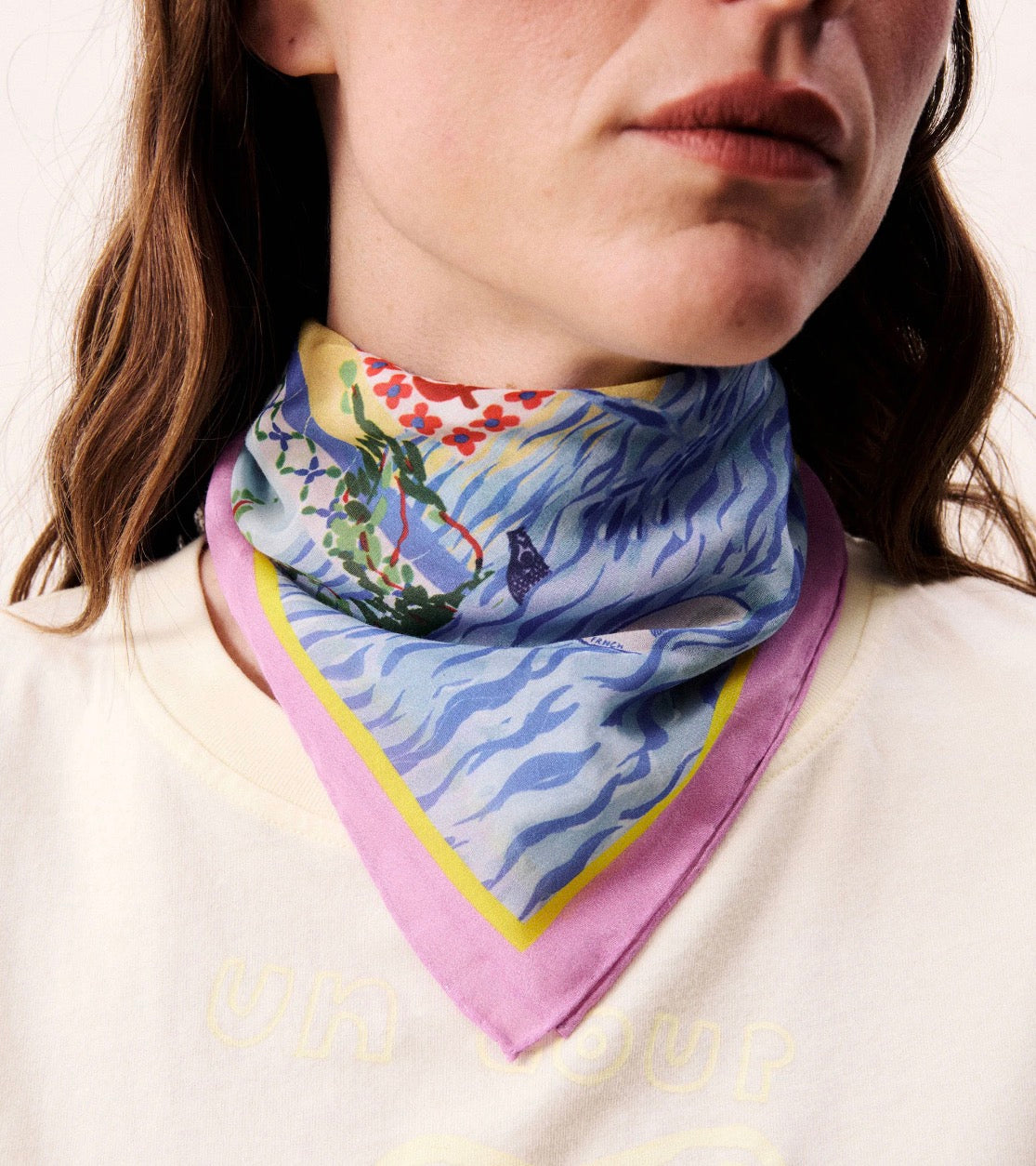 This Foulard, exclusively designed by FRNCH, is expertly crafted from luxurious silk and features a unique and stylish print. Its elegant and professional tone make it a must-have accessory for any occasion.