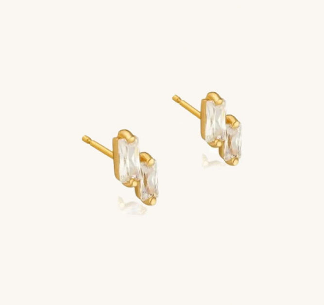 Dainty yet detailed, these studs will be your go to earrings! 14k gold plated over sterling silver Hypoallergenic and nickel free Cubic zirconia gems. Great for sensitive ears.