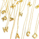 Make a personalized statement with our "Bubble Initial Necklace". This exquisite piece features a golden color name initial that resembles a foil balloon, adding a playful and whimsical touch to any outfit. Each necklace is carefully crafted with hypoallergenic materials to ensure comfort and safety for all skin types. With an adjustable chain, it offers versatility in styling, allowing you to wear it at your desired length. Whether you're treating yourself or surprising a loved one, this necklace is the perfect gift option to add a personalized touch to any occasion.