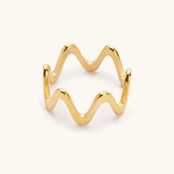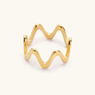 Embody modern style with the Nikki Smith Wavey Mollie Gold Ring. Made with waterproof stainless steel and 14k gold plating, this ring is perfect for any occasion. Sweat, shower, and swim freely without worry.