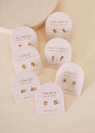 The Zodiac Charm Studs offer a cute way to flaunt your zodiac sign and unique style. Ideal for first, second, or third ear piercings.