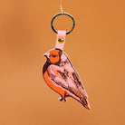 100% Genuine Leather Keyring | Made in the United Kingdom | Gold plated Ring A sweet finch key fob embossed with bold colors and detailed with fine lines in contrasting foil. A lovely gift for bird watchers and nature lovers this summer. Made using the traditional technique of hot foil embossing which ensures a handmade and unique product every time. Embossed and assembled in Scotland. Designed and dispatched from our Cambridge studio. Genuine leather key fob with gold plated ring. British made.