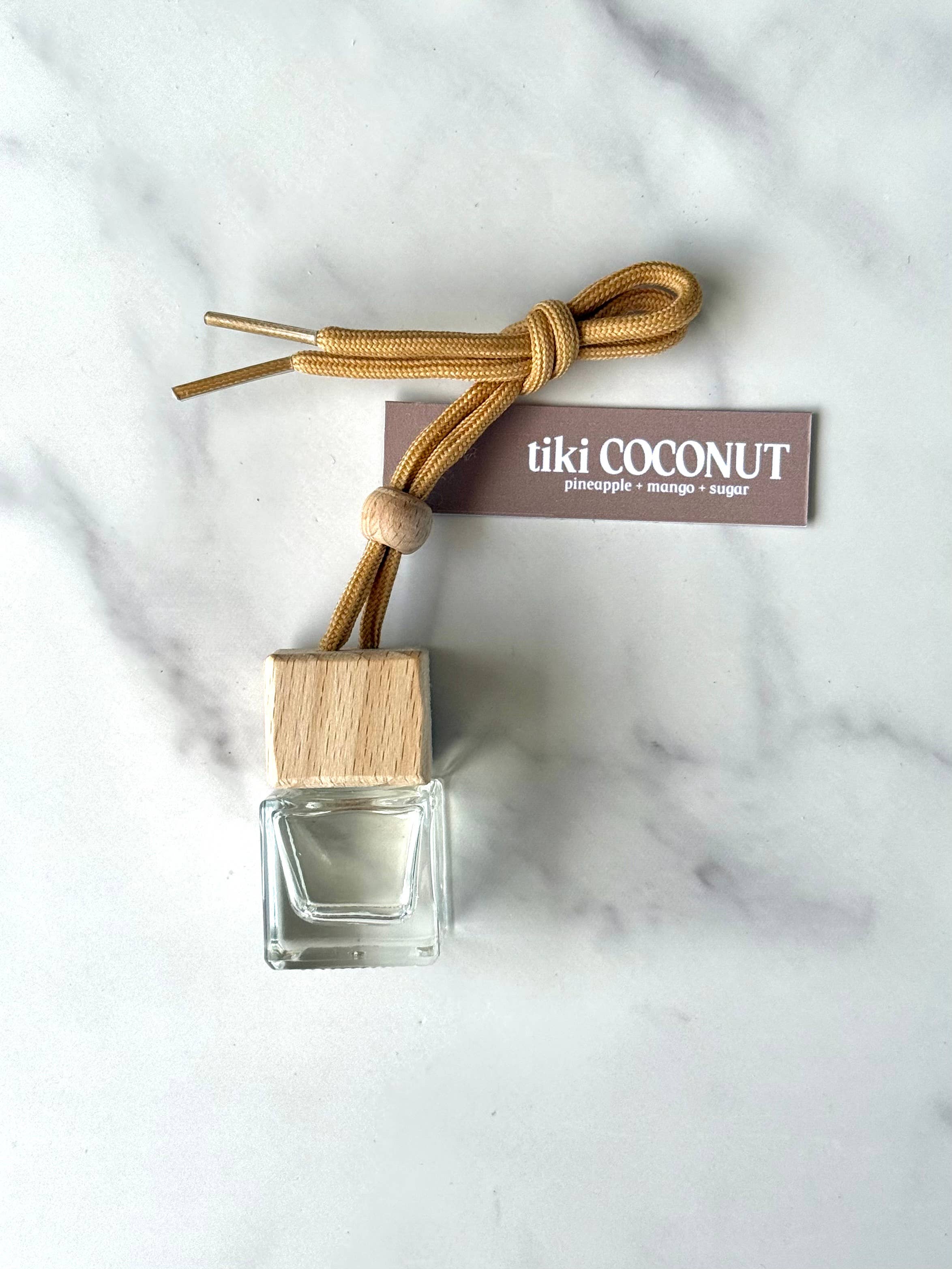 To use, first remove the wooden lid, pop out the clear stopper and replace the wooden lid and tip upside down and let the oil saturate the lid. Tip upright and replace the clear plug top, then the wooden lid, hang and enjoy.