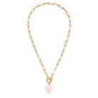 The paperclip trend is forecast to continue! This is a heavy paperclip chain with a toggle clasp and a pendant of a rose quartz heart or an amethyst heart. Three trend elements in one very cute necklace! Made of 14k gold plated brass + coated to resist tarnish and create a hypoallergenic surface.