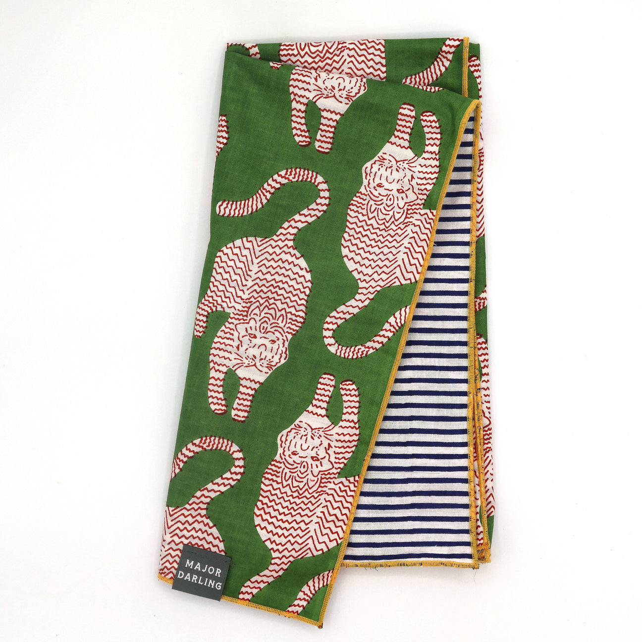 Details: Reversible · Hand Block Printed Fabric · Contrast Rolled Hem · Pre-Washed · Super Soft · Approximately 21" Square