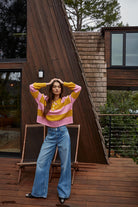 This mustard yellow and pink striped Declan sweater top from By Together is made from a soft, knitted material of 55% cotton and 45% acrylic. Its button-down design adds a touch of sophistication while providing easy comfortable wear. Hand wash cold and lay flat to dry for best care results.