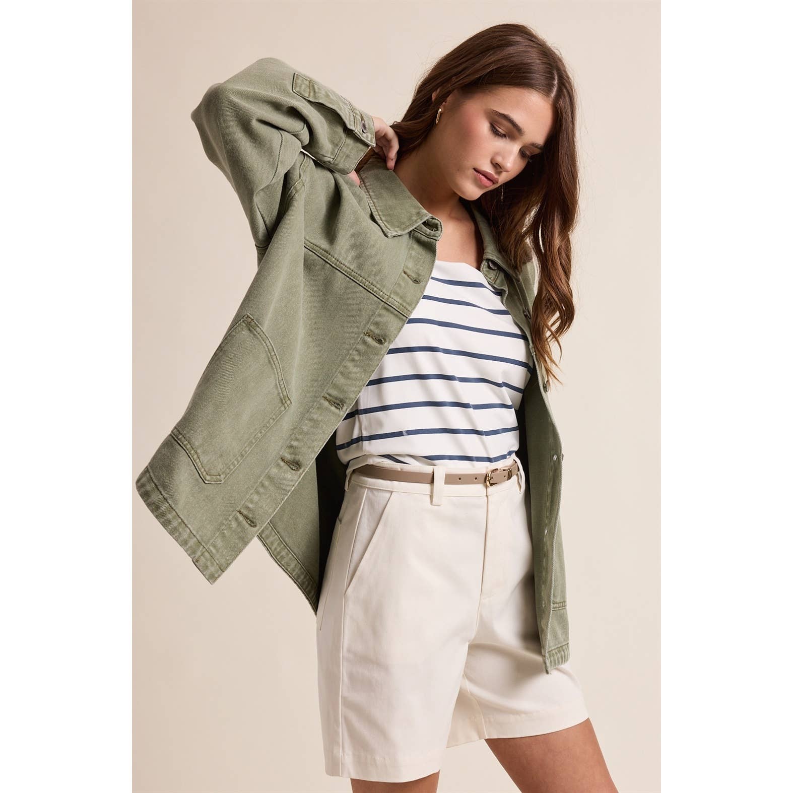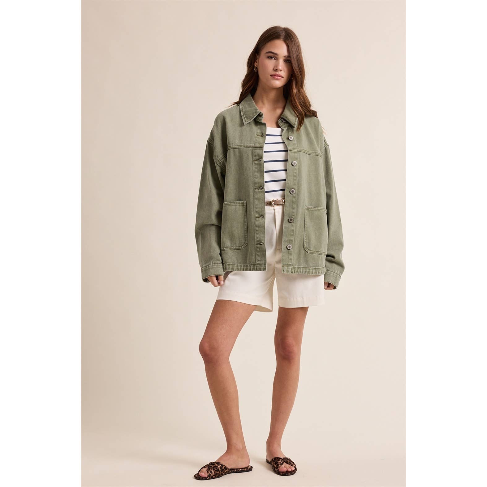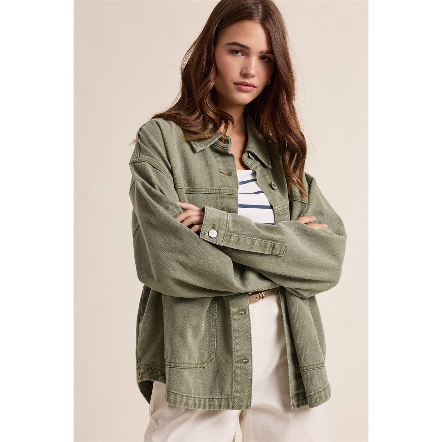 Olive Denim Button-Up Jacket