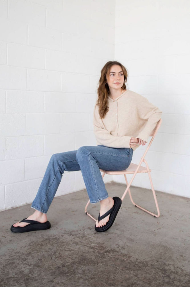 Our super soft and lightweight cardigan with a rolled edge finish and buttons.