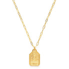 Elevate your accessory collection with our captivating "Dog Tag Zodiac Pendant Necklace". Each zodiac pendant is meticulously crafted using vintage molds, resulting in a unique and timeless piece of jewelry. Measuring just 0.5 inches, the pendant hangs gracefully on an 18-inch drawn cable chain made of brass with a bright 14K gold plate, adding a touch of luxury to any ensemble. The adjustable design allows you to customize the length of the necklace to suit your preference, while the hypoallergenic materials ensure comfortable wear for even the most sensitive skin types. Embrace your astrological sign and add a touch of celestial charm to your look with the "Dog Tag Zodiac Pendant Necklace".
