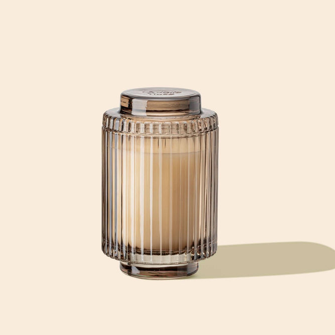 Elevate your space with Amélie: Timeless ribbed glass candles, reminiscent of the Acropolis grandeur. Available in calming colors, they offer a sustainable 40-hour burn with natural soy wax and seamlessly become elegant keepsake containers.