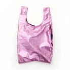 A smaller version of BAGGU's original reusable shopping bag. Perfect for your lunch, a six pack, extra shoes, or a trip to the corner store. This tote features the shiny pink Blush Metallic finish. Built-in straps for hand carrying allow you to hold up to 50 lbs comfortably in your hand.