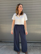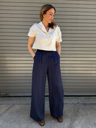 The FRNCH Navy Pinstripe Pants are the ultimate throw-on trouser. Hitting that sweet spot between polished and effortless, trouser details and a partial elastic waist mean they look intentional but feel like you're barely wearing anything. A 31 inch inseam and 13 inch rise make them genuinely flattering on, not just on the hanger.