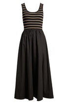 Knit Stripe Ribbed Bodice Dress - Black Taupe