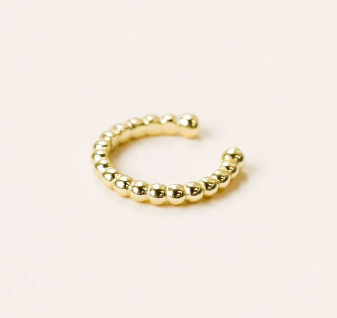 Welcome to the Golden Collection - Take your earring stack to new heights with our largest collection launch EVER Your everyday cuff just got an elevated look with petite spheres creating this pierce-free hoop.