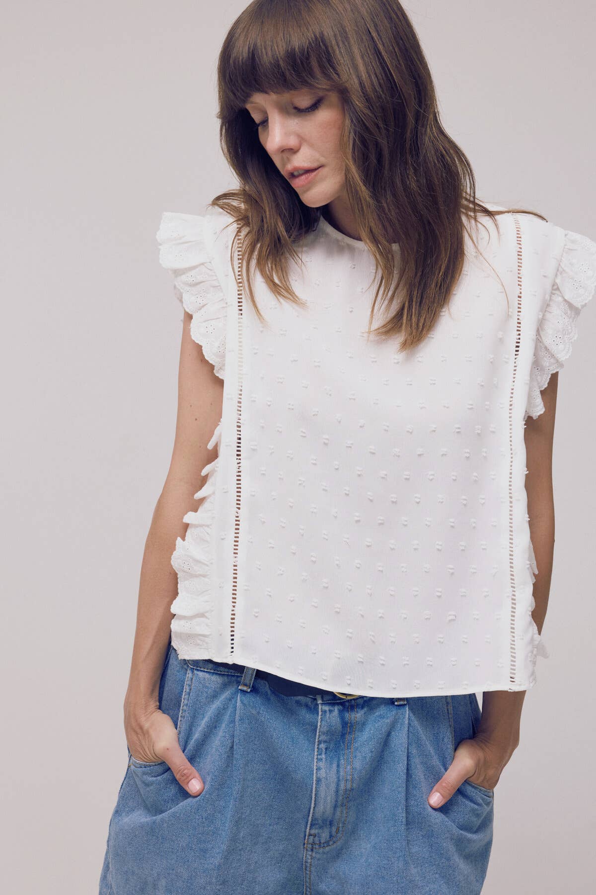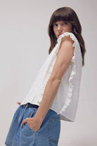 Lace Trim Swiss Dot Sleeveless Top