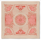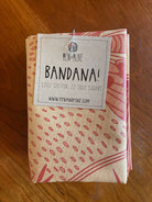 This 22” cotton bandana features a design of cosmos and moths. The illustration is silk screened with water-based ink in two tones of pink, on a natural, tan colored bandana. These bandanas are printed in California using eco-friendly methods.
