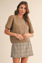 Short Puff Sleeve Sweater Cardigan - Mocha