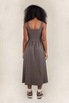 Crafted in our beloved Ultra Luxe Jersey fabric, the Tomo Arches Midi Dress boasts a square neckline, corset-inspired bodice, and pockets for added convenience. Its heavy knit and dip waist design ensure a flattering and comfortable fit, making it a customer favorite. Perfect for any occasion, this dress hits at midi length and is not see through.